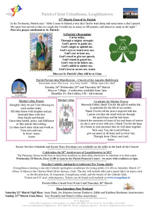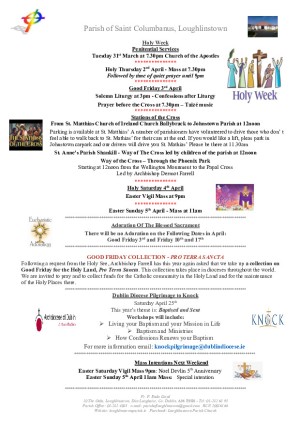 Parish office Open Tuesday to Friday 9am to 1pm - Ph: 01-2824085